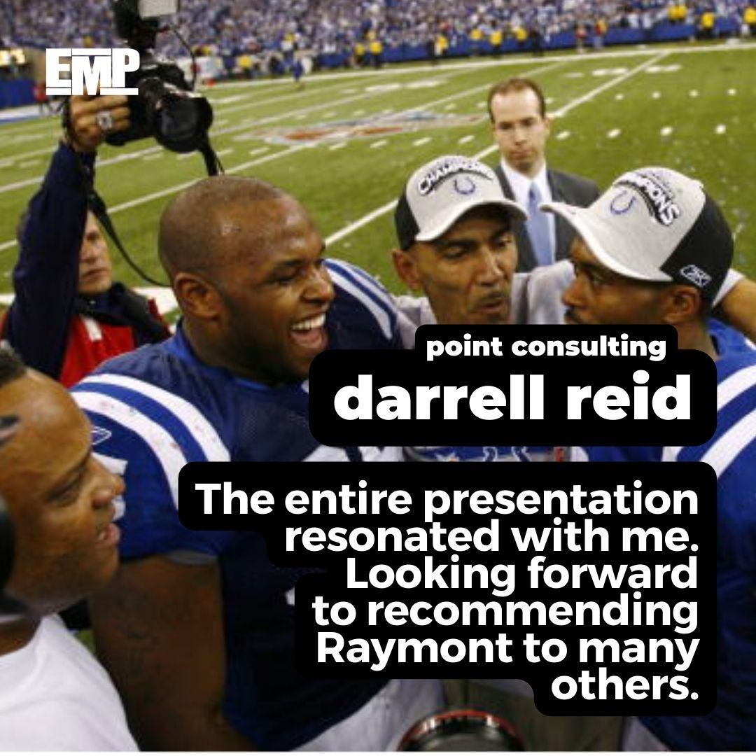 Through EMP and the EMP Collective, Raymont coaches high performers, builds leaders, and helps teams create cultures rooted in belief, effort, and accountability. He also serves through the Jean and Raymont Harris Foundation, supporting families facing maternal health challenges and former athletes navigating life after sports.